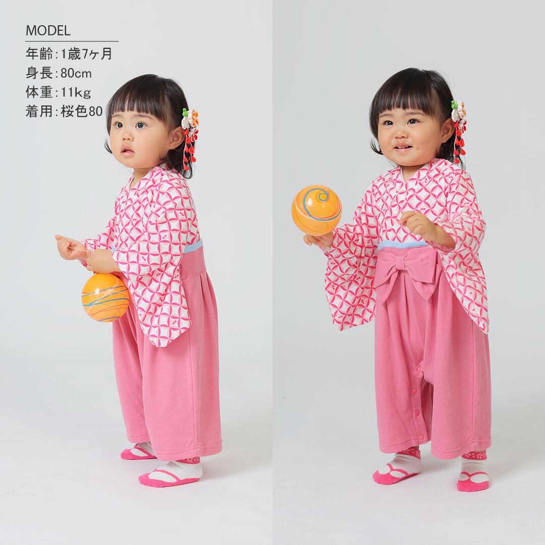 七宝柄女児袴ロンパース [75008A]
