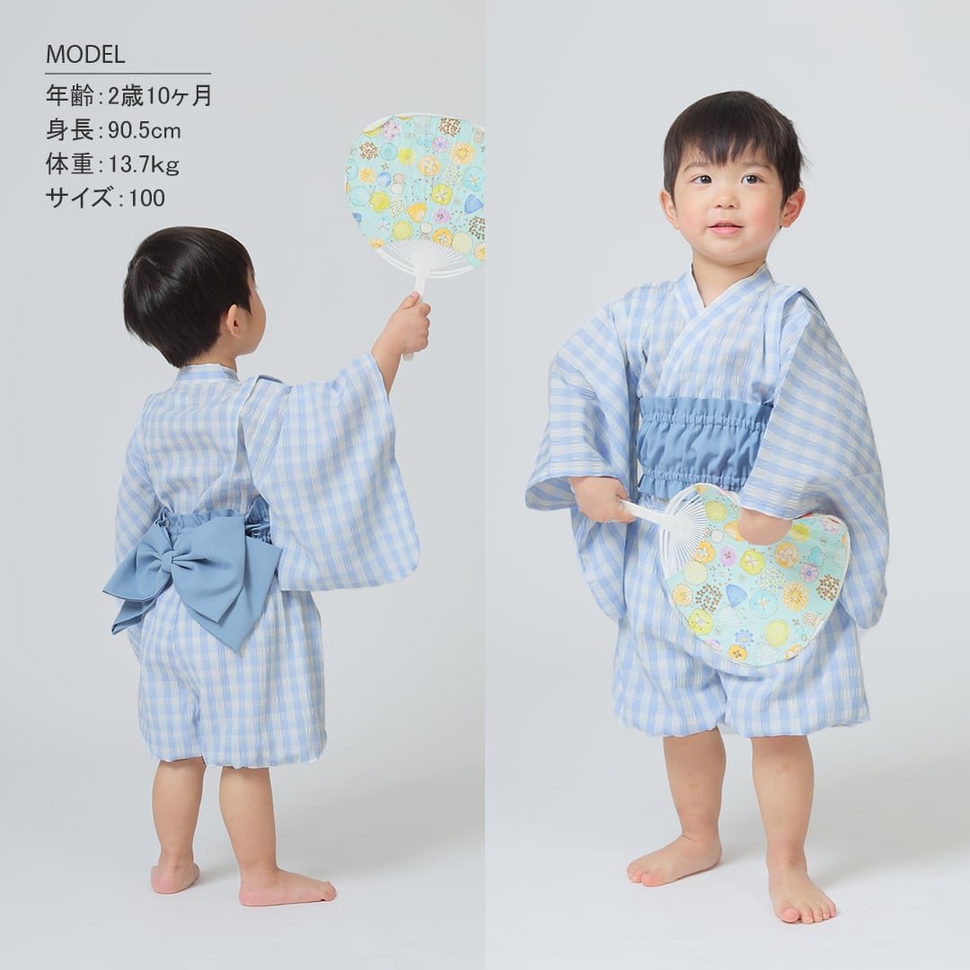 男女ともに着られるユニセックスデザインの浴衣風甚平